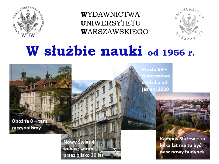 The University of Warsaw Press (Wydawnictwa Uniwersytetu Warszawskiego, WUW) was founded in 1956 as an integral part of the University of Warsaw. We publish scholarly and educational books authored by the researchers from both the University of Warsaw and the other scientific centres. We also offer translations of the foreign titles that contribute to the development of science. Nowadays more and more our publications are available as e-books (including open access).