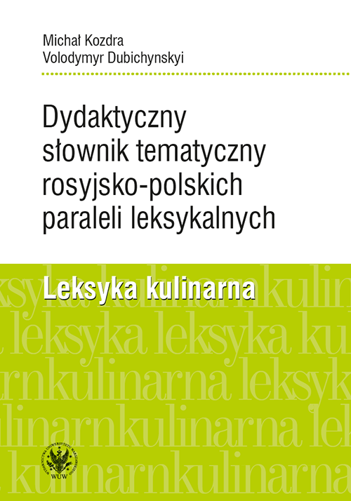 Dictionary is an innovative thematic dictionary containing culinary vocabulary and describing full, partial, and false lexical parallels of the Russian and the Polish language, i.e. words that are similar visually/phonetically, with full or partial correspondence of meanings or with completely different meanings. The dictionary has a didactic character and is addressed primarily to people learning Russian and Polish at various levels. The thematic arrangement of entries and the set of example exercises make it easier to work with a teacher or individually.